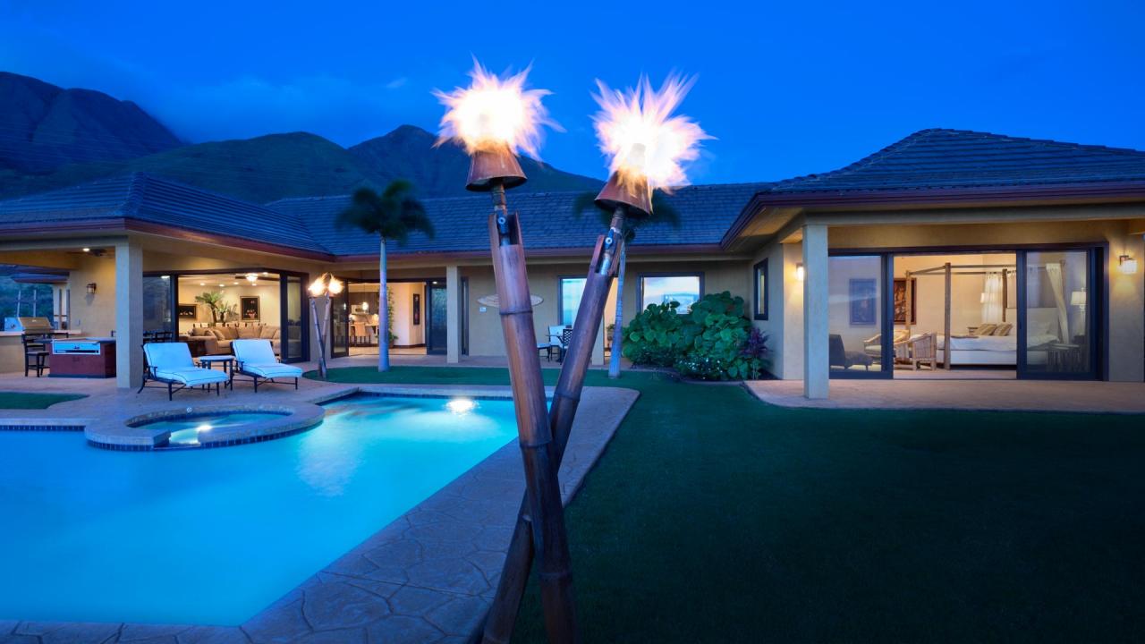 The lower level consists of a large warehouse, temperature control, the state of the art 35mm projection theater, a real gym, a bedroom suite for guests and family heated pool next door. Large gardens with tall trees and green areas. The property has a pool, spa, lighted tennis court, outdoor kitchen, multi-level decks surround the structure, plus the most unique pond with waterfall and dock.